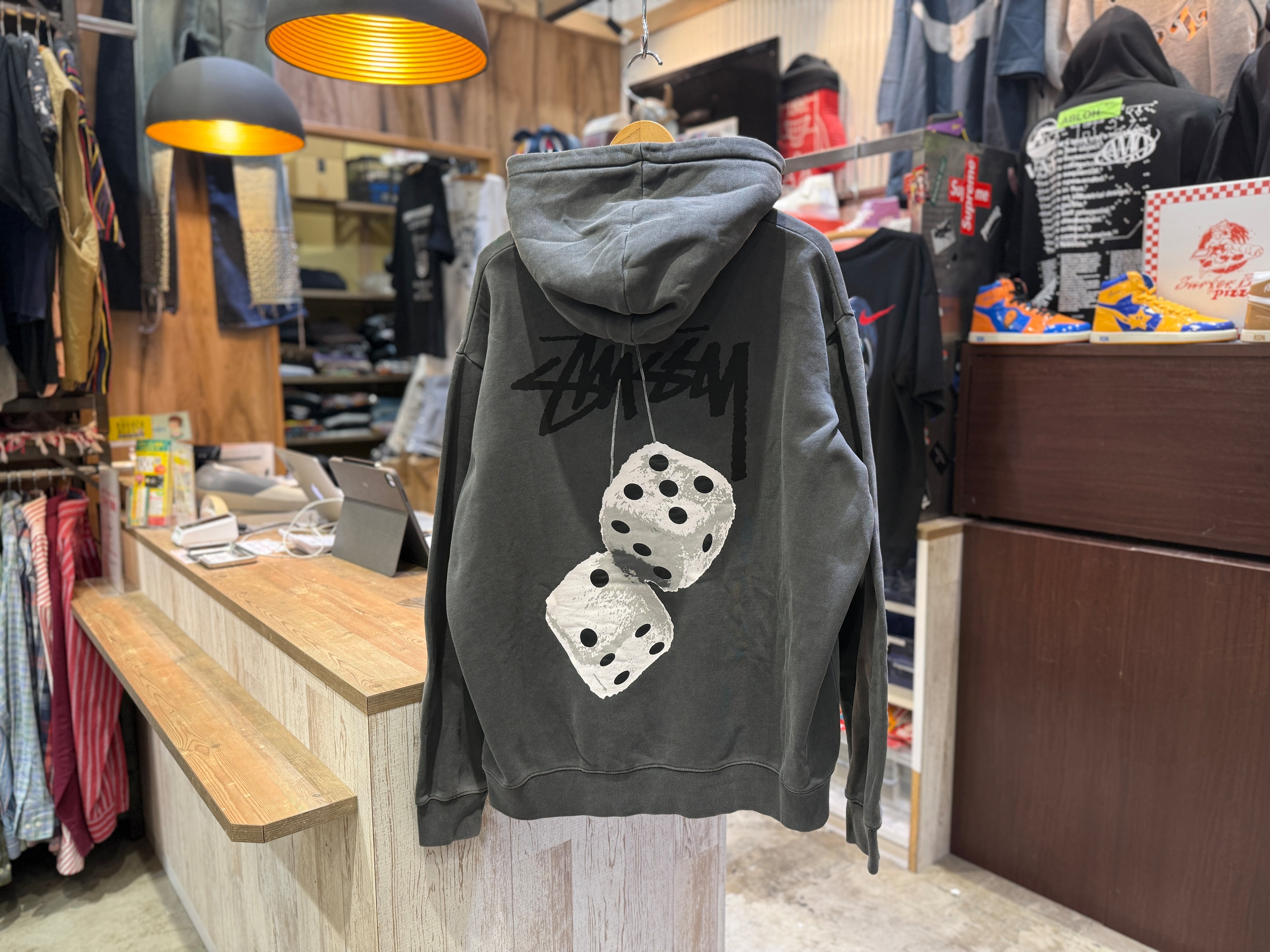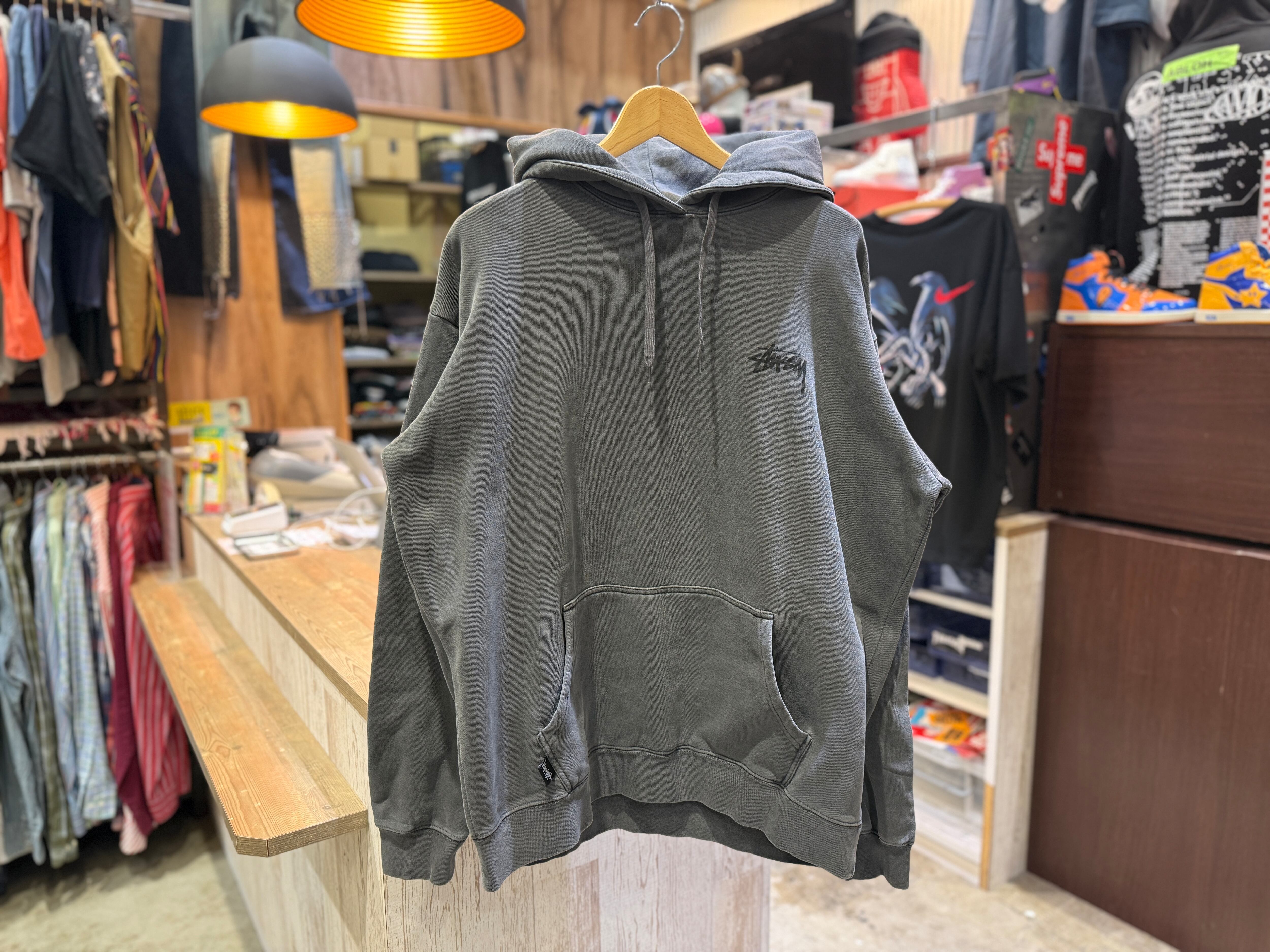 【STUSSY】GARMENT DYE HOODIE GRAY