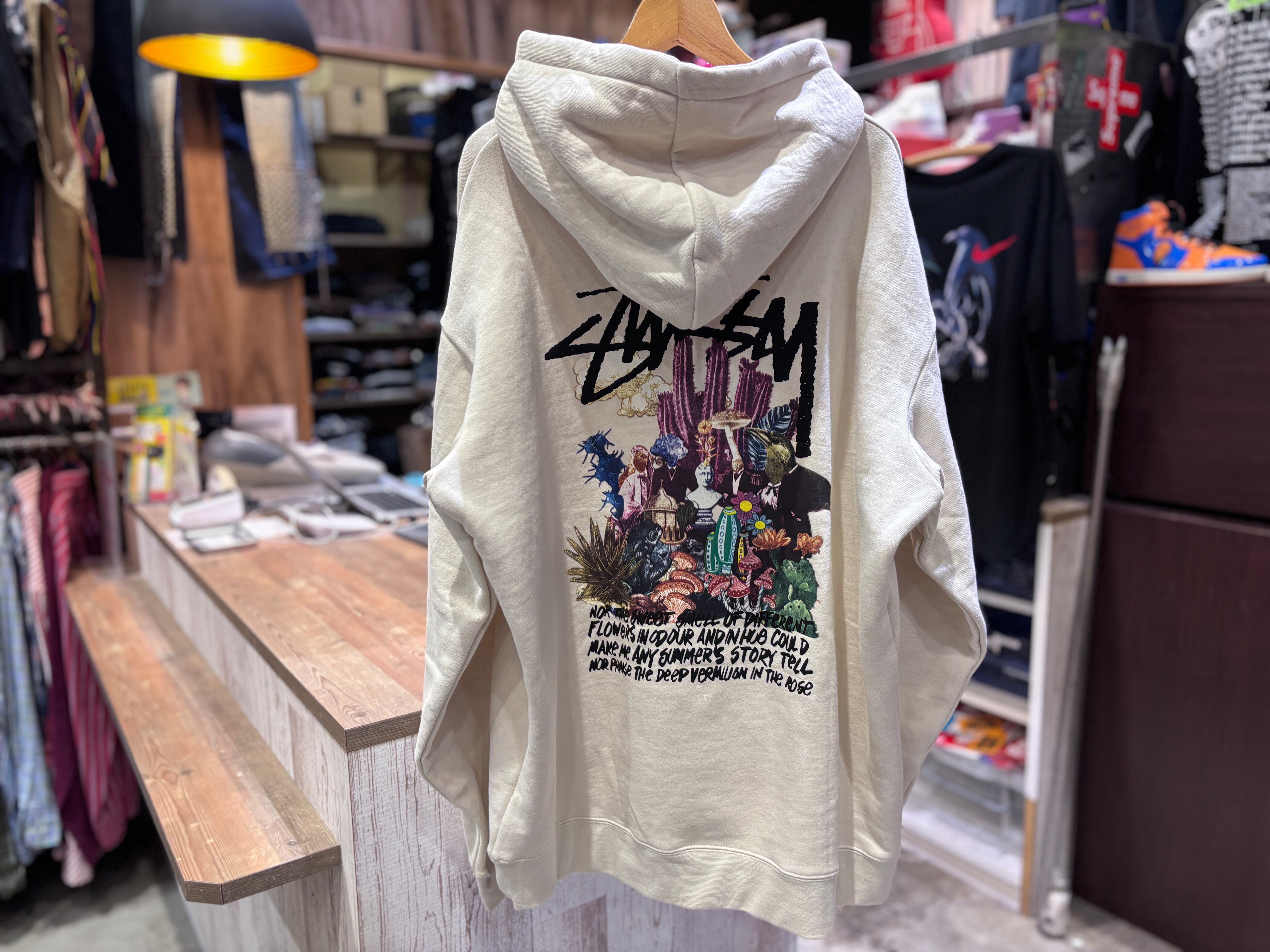【STUSSY】BACK PRINT HOODIE CREAM