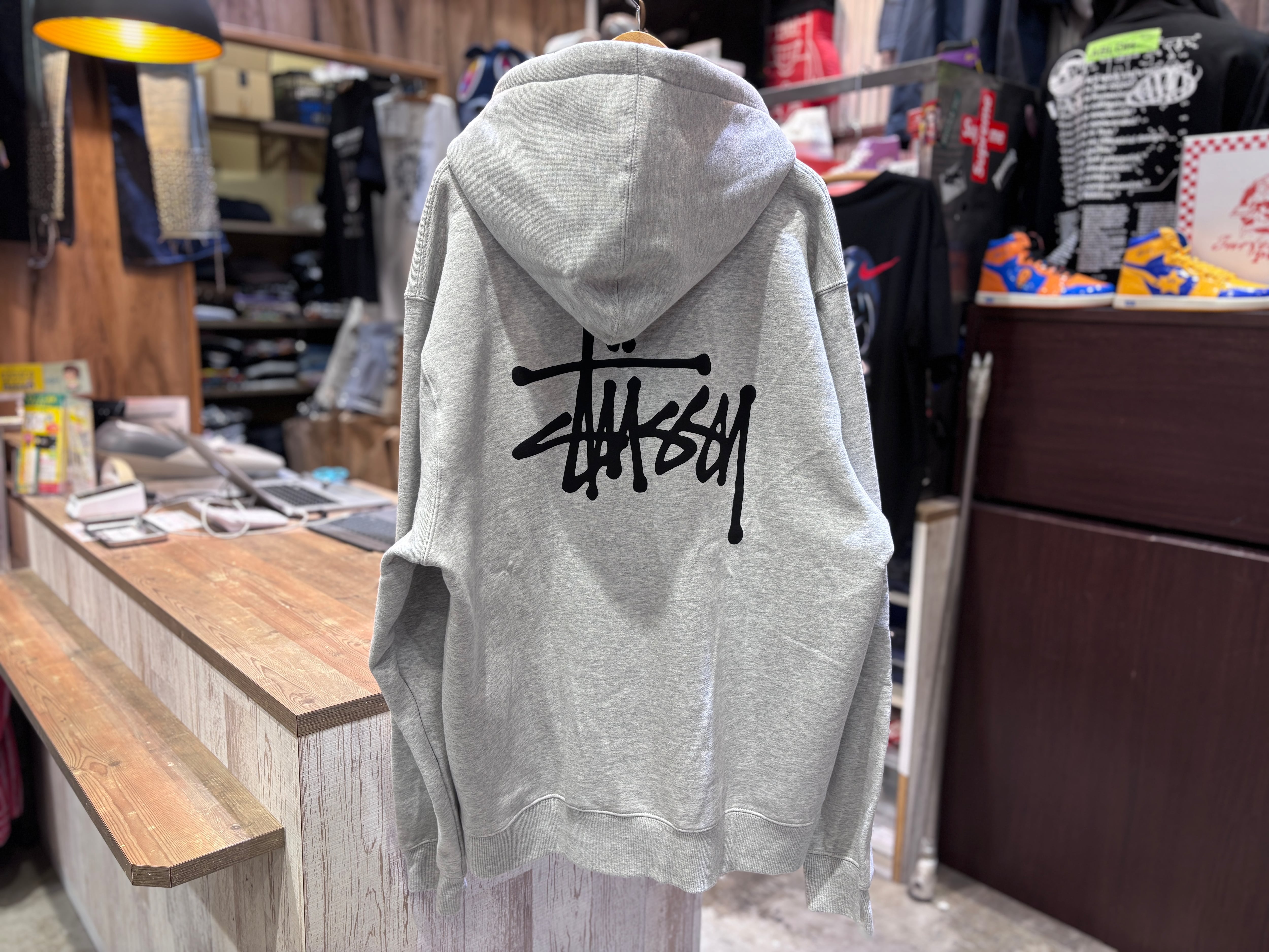 【STUSSY】LOGO EMB HOODIE GRAY