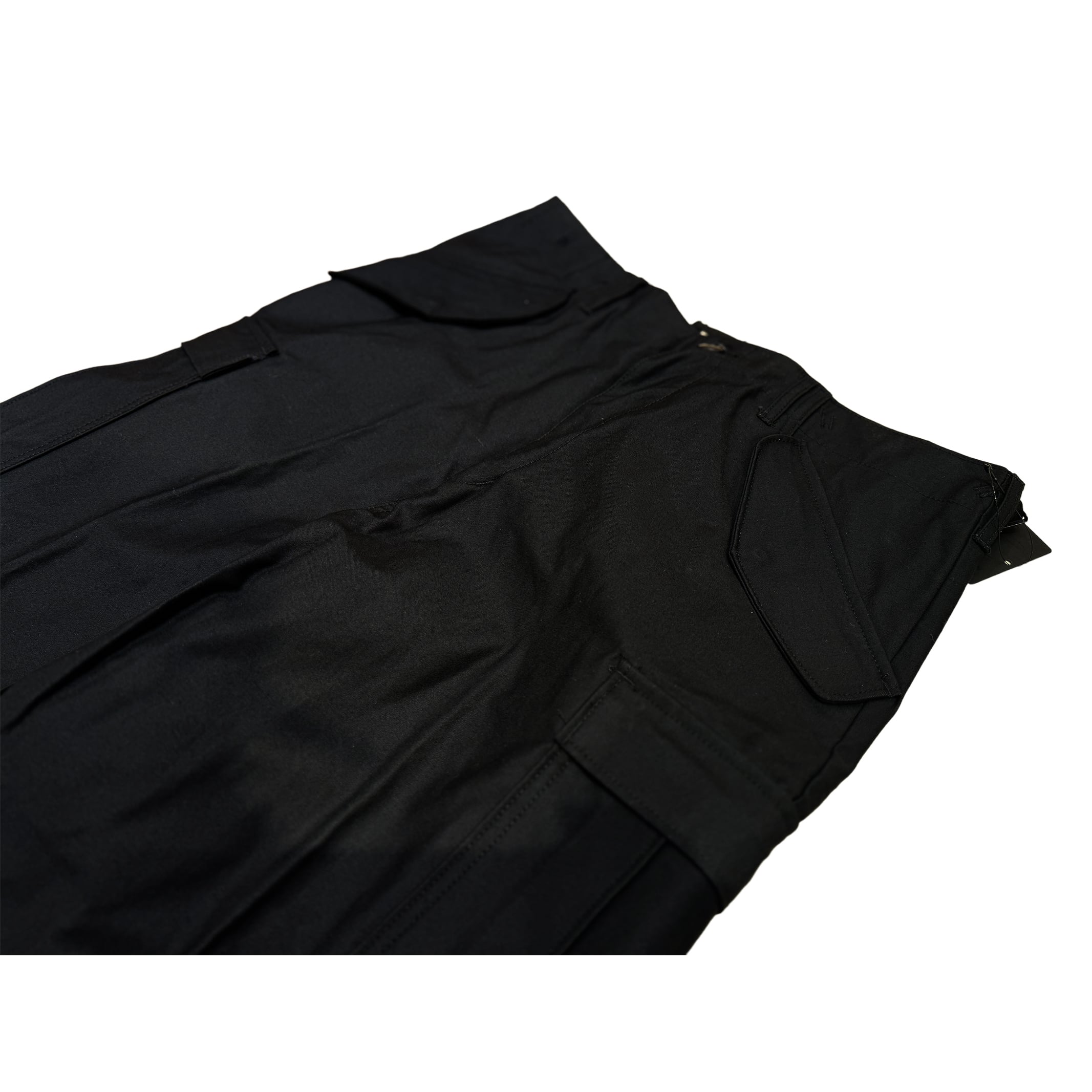 大型のカーゴポケット、カーゴポケット内の固定用ストラップ、サスペンダー用の吊り下げストラップが特徴です。