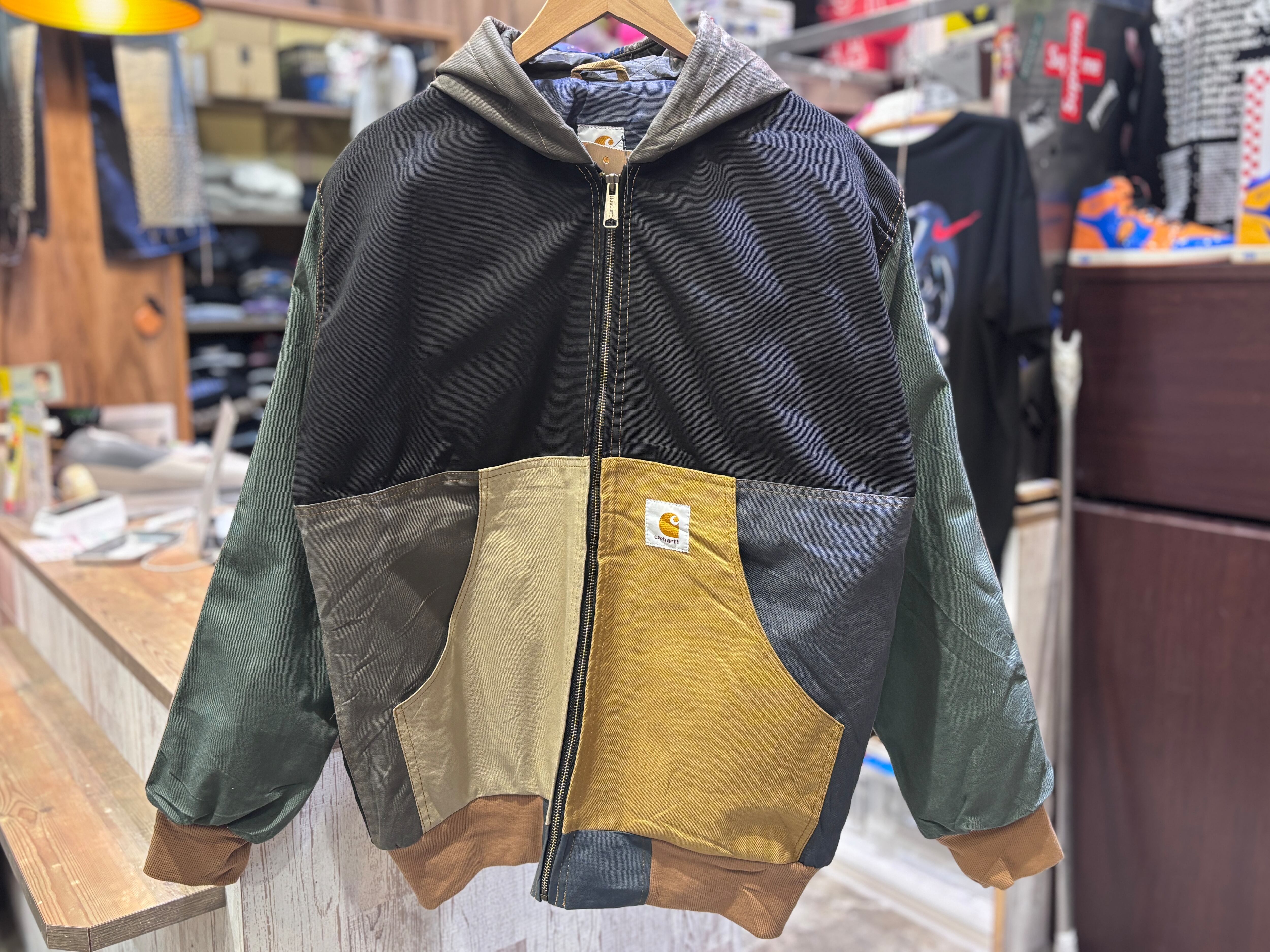 カーハート 等のワークウェアブランドの廃材を利用しアップサイクルしたアイテムです。