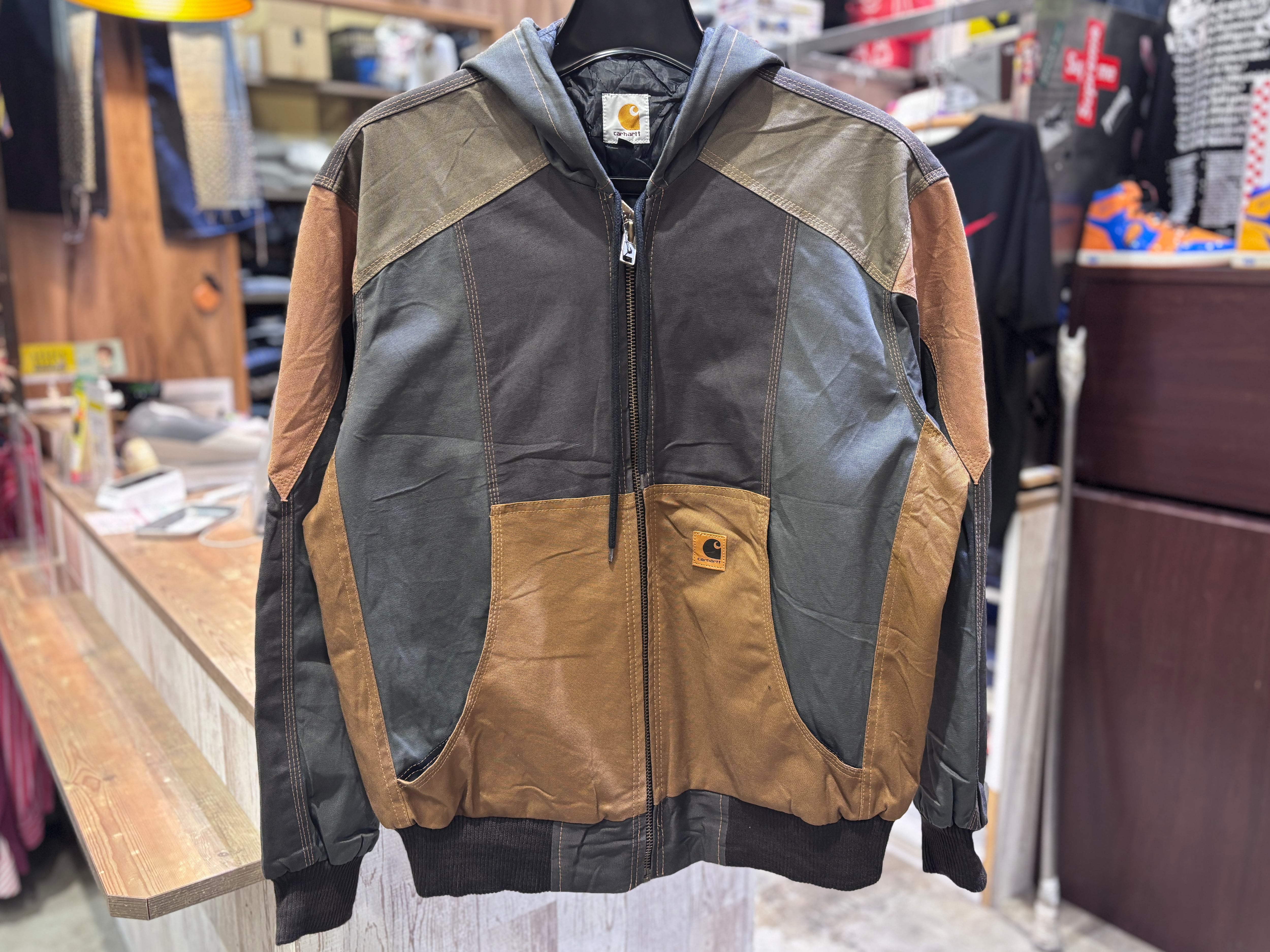カーハート 等のワークウェアブランドの廃材を利用しアップサイクルしたアイテムです。